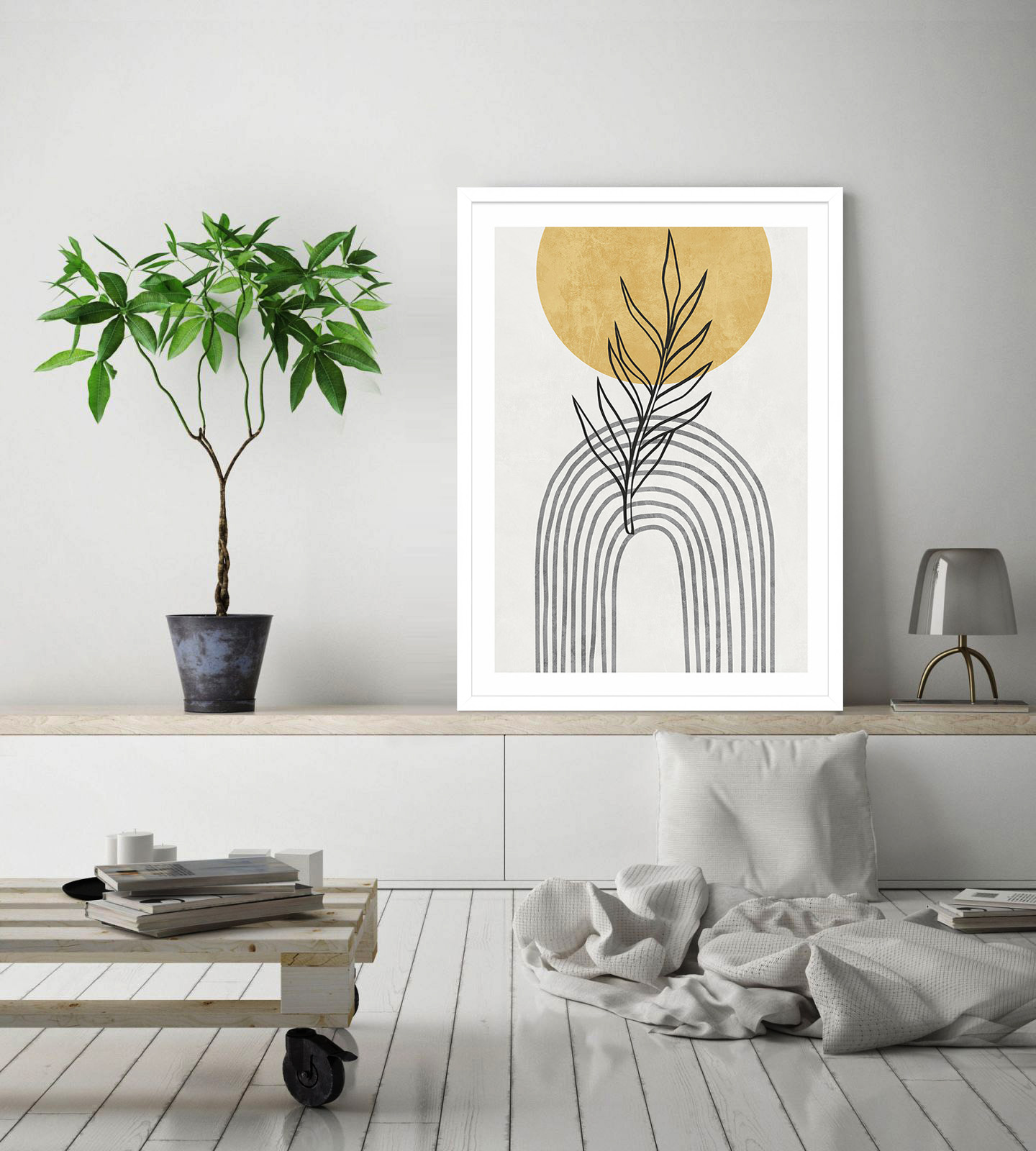 Постер в деревянной раме на стену 50х70 в стиле Бохо графический