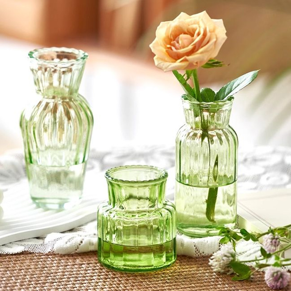Три маленькие вазы из зеленого стекла